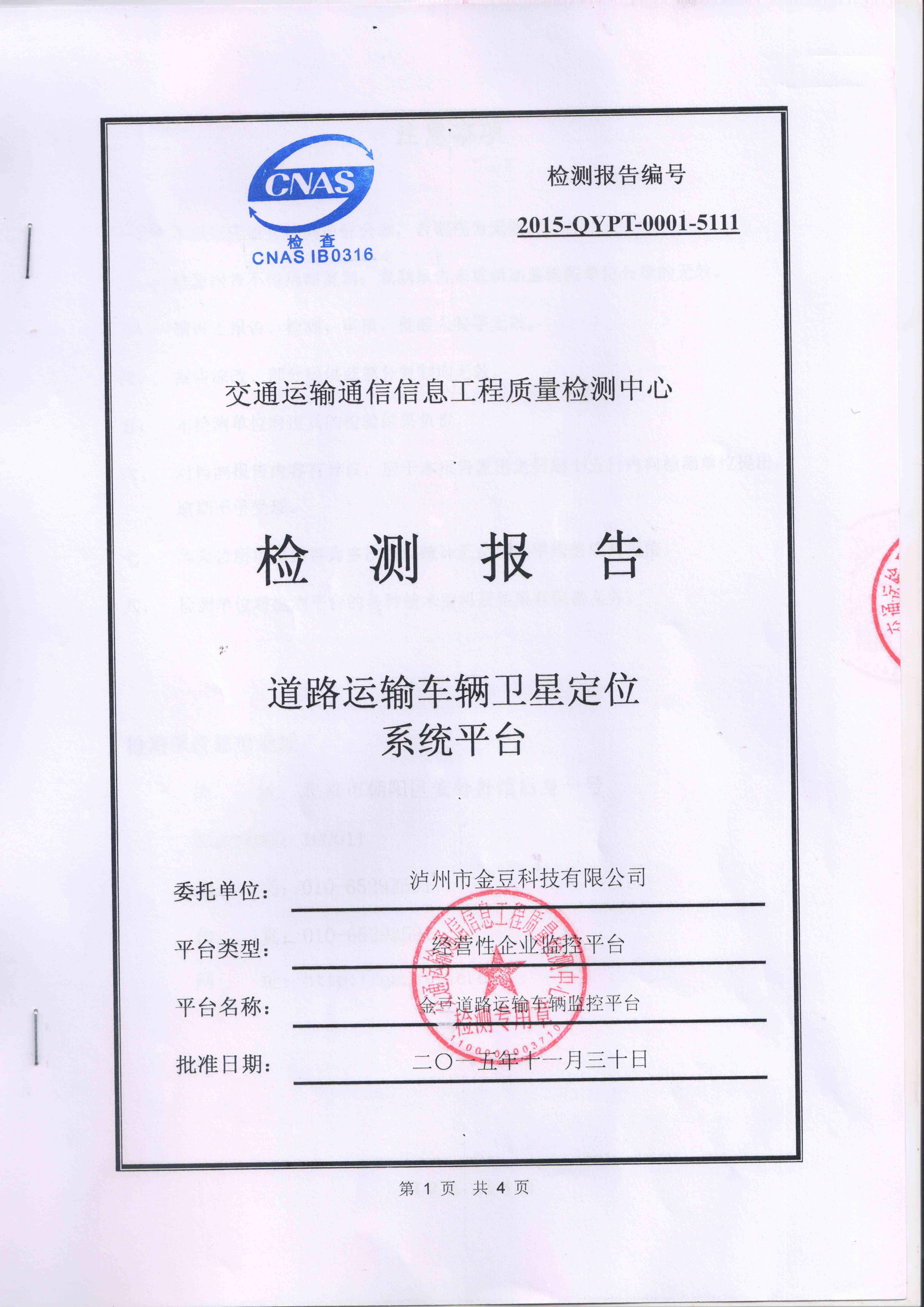熱烈慶祝金豆科技公司GPS平臺(tái)通過中華人民共和國交通部...
